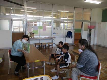 今年度の読み聞かせが始まりました。今日は、1年と3・4年の教室で本を読んでいただきました。子どもたちは、本の世界に引き込まれていました。