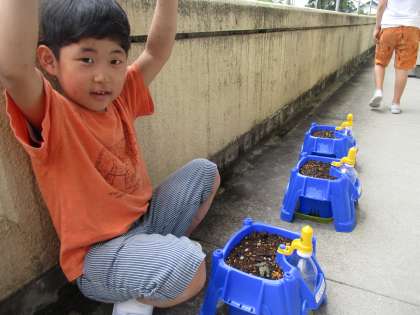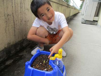 アサガオの芽が出ました。昨日一つ、今日一つです。