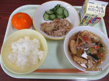 きゅうりもみ 沢煮椀 冷凍ミカン