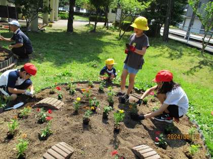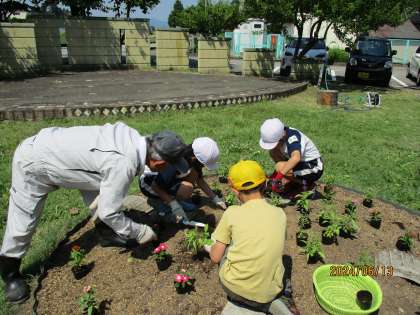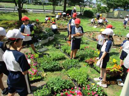 【6月13日(木)】みんなで協力!フラワーガーデン作り 公開日 2024/06/13 更新日 2024/06/13 今日の船峅っ子 「どんな花を植えようか?」(上級生からの言葉) 「この花がいいんじゃない?」→「そうだね!」 等々 1〜6年生が互いに協力し、協働して自分たちの班の花壇制作を行いました。 どの花壇からも、子供たちの夢中になって取り組む様子が見られました。 活動が終わった後の子供たちの表情は、疲れたけれど、充実感でいっぱいでした。