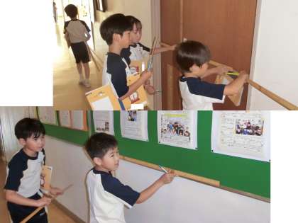 「階段の手すりの長さは、4m10cmで、黒板の横の長さと同じくらいでした!」