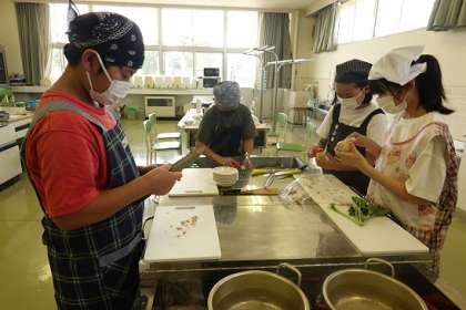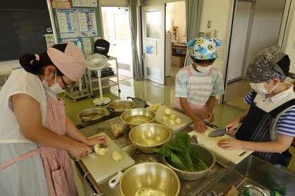 5年生はジャガイモとほうれん草をゆでて食べました。