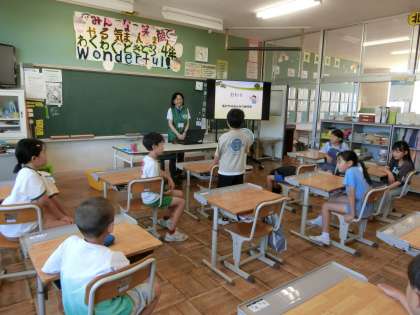 3・4年生の教室では、とやま環境財団の環境推進員の方を講師に招き、「とやま環境チャレンジ10」の学習に取り組み始めました。