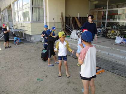 6月26日(水) 生活科「夏を楽しもう」1・2年生 公開日 2024/06/26 更新日 2024/06/26 2年生 今日は、1・2年生合同で、生活科の学習として「夏の遊び」を楽しみました。 シャボン玉を作ったり、シャワーや水鉄砲の水をかけ合ったりして、夏の日差しや気持ちよい風を感じながら、楽しく過ごしました。