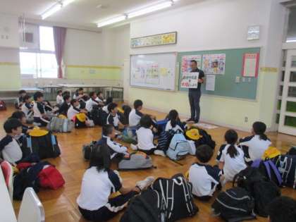 今日から3・4年生は1泊2日、5・6年生は2泊3日の宿泊学習に出かけます。出発式では、今回のテーマ「仲間のがんばる姿や、よいところを認め合うことができる宿泊学習にしよう」を確認しました。