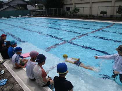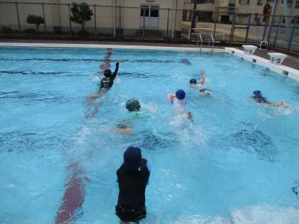 7月18日(木) 1学期最後の水遊び(1・2年生) 公開日 2024/07/18 更新日 2024/07/18 2年生 来週23日(火)には着衣泳体験を予定していますが、水遊びは今学期最後です。 だるま浮きや伏し浮き等、できるようになったことを互いに見せ合いました。 「夏休みもがんばって、5m泳げるようになりたい」と、意欲を見せていました。