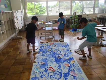 完成したつりゲームを楽しんでいます。つった海の生き物の数を正しく数えるのも大切な学習です。