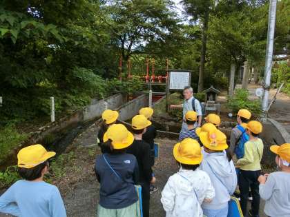 地域の土地改良区の方々に協力いただき、舟倉用水の歴史や先人の努力、苦心を肌で感じるために、舟倉用水の見学に行きました。