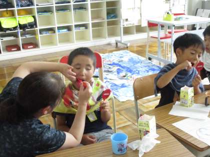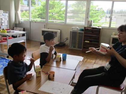 学級活動の時間に、養護教諭と一緒に、6歳臼歯と歯のみがき方について学習しました。