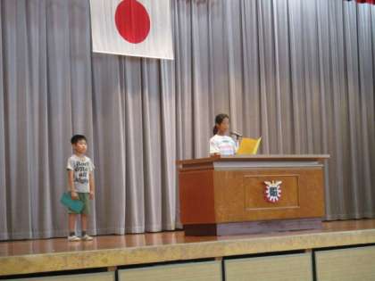 代表の児童が、1学期の振り返りとこれからの目当てについて発表しました。堂々とした態度で、しっかりと伝えることができました。