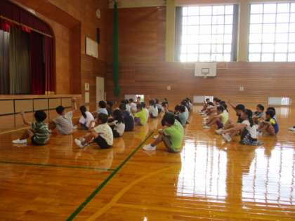 体育館で始業式を行いました。校長先生の話をしっかり目をつないで聞くことができました。