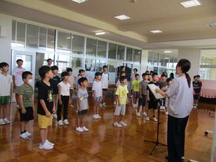 10月に行われる区域連合音楽会に向けて、練習が始まりました。全校の歌声が重なるととてもきれいです。