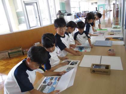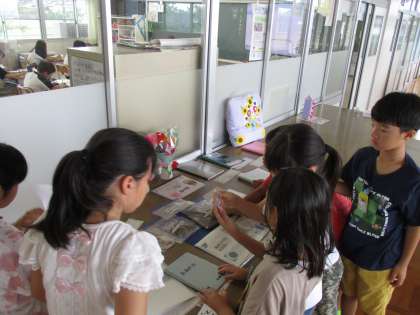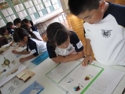 他の学年の自由研究を、数日かけて順番に見に行きました。食い入るように読みながら、「なるほど」「おもしろいね」「すてきだね」と感想を話していました。