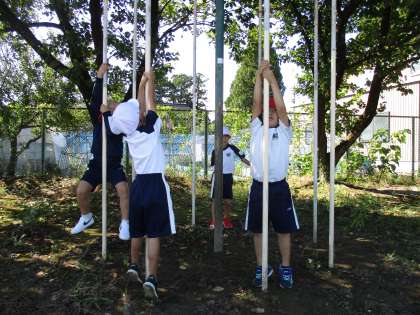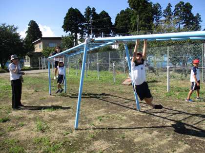 久しぶりにグランドで体育をしました。かけっこをしたり、うんていや鉄棒、上り棒に挑戦したりしました。