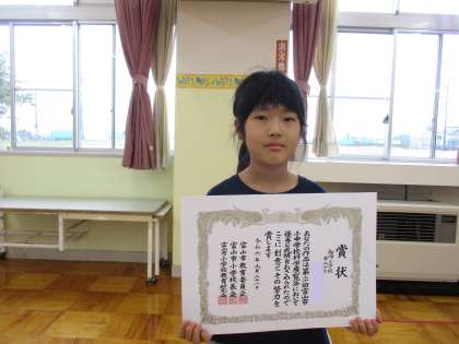 表彰式では、まず、富山市花いっぱいコンクール学校部門モデル花壇金賞の紹介がありました。富山市科学展覧会入選受賞の紹介もありました。