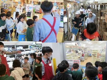 スーパーマーケットでは、バックヤードも見せていただき、たくさんの品物を運ぶ人、お弁当やお総菜をつくる人、肉や魚を切り分ける人など、多くの方が安全面や衛生面に気を付けて働いていらっしゃることがわかりました。
