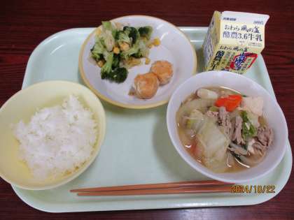 (今日の献立) ごはん 牛乳 にんじんシューマイ コーン和え 豚すき焼き