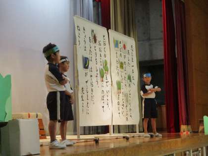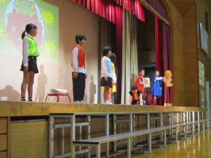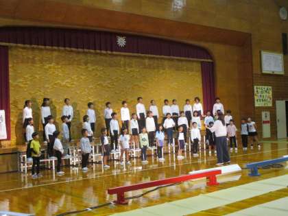 これまでの練習の成果を生かし、全校の前で発表しました。