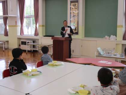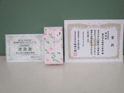 給食の時間に、校長先生から「富山県花のまちづくりコンクール・学校花壇部門奨励賞」の表彰紹介がありました。