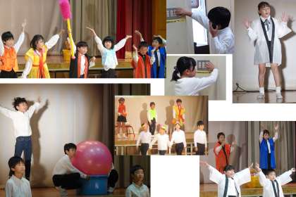 裏方として、体育館の証明を消す係や、PCのスライド係等もみんなで分担して発表しました。