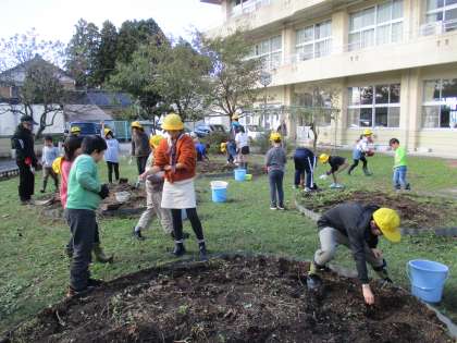 11月6日(水) 全校花壇作業 公開日 2024/11/06 更新日 2024/11/06 今日の船峅っ子 昨日に引き続き、全校で花壇作業をしました。5月に植えた花や雑草をすべて抜いたり、足場用のブロックを片付けたりして、秋植え作業の準備をしました。4年生は、ヘチマの収穫もしました。 11月下旬には、チューリップの球根やパンジーを植える予定です。
