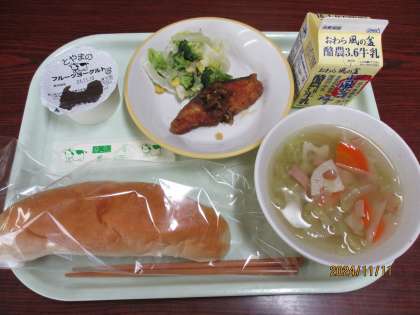 米粉コッペパン 牛乳 魚の白ネギソースかけ