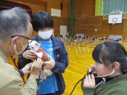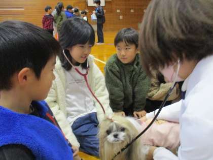 獣医さんと一緒に、犬の心臓の音を聞きました。人間よりも少し速い音だったようです。