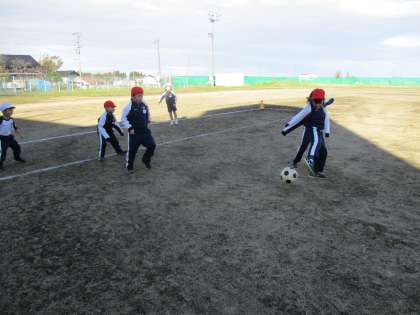 12月2日(月)久しぶりの外での体育(1・2年生) 公開日 2024/12/02 更新日 2024/12/02 2年生 小春日和の温かな日差しの中、久しぶりにグラウンドで体育ができました。 「キック&キャッチ」というサッカー型のゲームで、子どもたちは「作戦を考えよう」と自主的に集まったり、声をかけあってパスを練習したりしていました。
