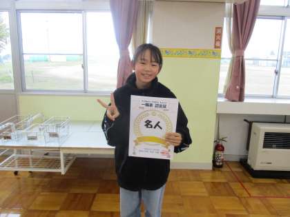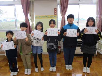 11月度 表彰式(1) 公開日 2024/12/09 更新日 2024/12/09 今日の船峅っ子 11月度の表彰式を行いました。 スクールミュージアム出品者各学年1名、夏休み作品応募入賞者、一輪車チャレンジ名人達成1名の紹介がありました。