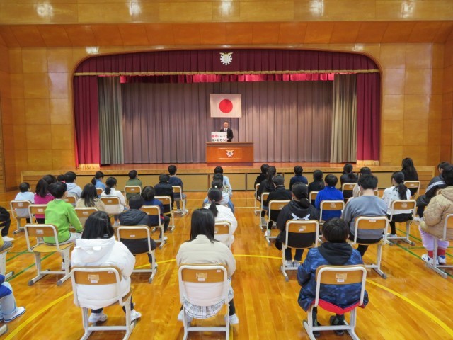 子どもたちは、始業式の校長先生の話を聞きながらがんばる気持ちを高めていました。