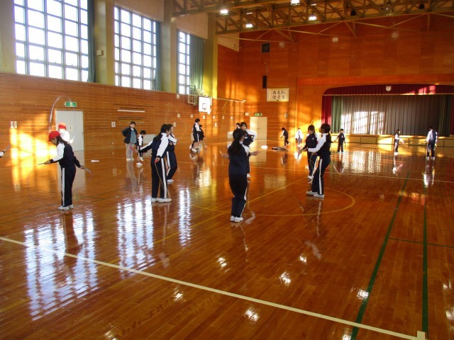 あや跳びや二重跳びなど、上級生のお手本が紹介され、「わたしも跳べるようになりたい」と、みんなの意欲が高まっていました。