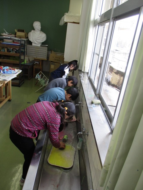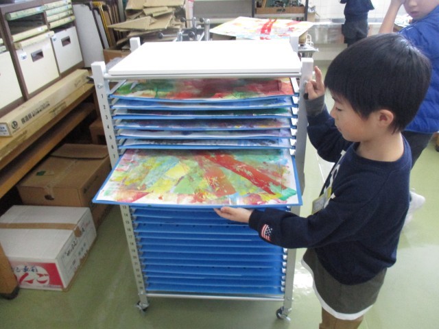 1・2年生は、シール版画の色づけをしました。最後の片付けもがんばっていました。