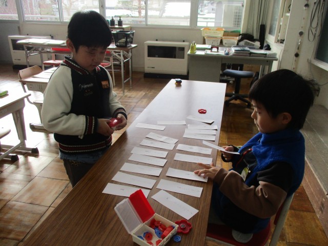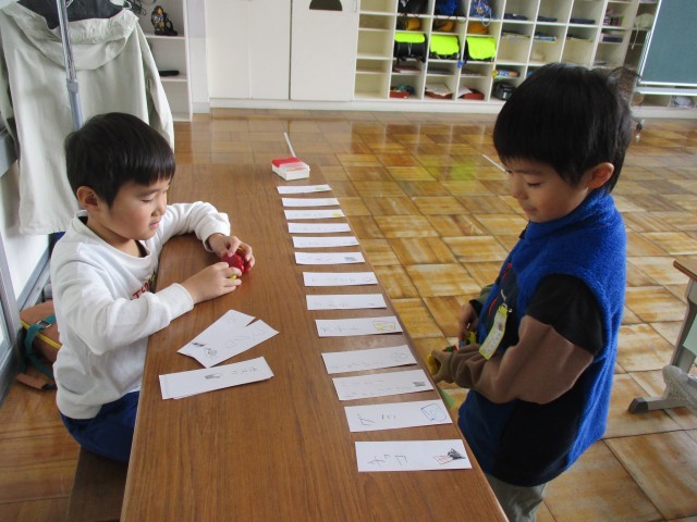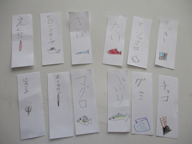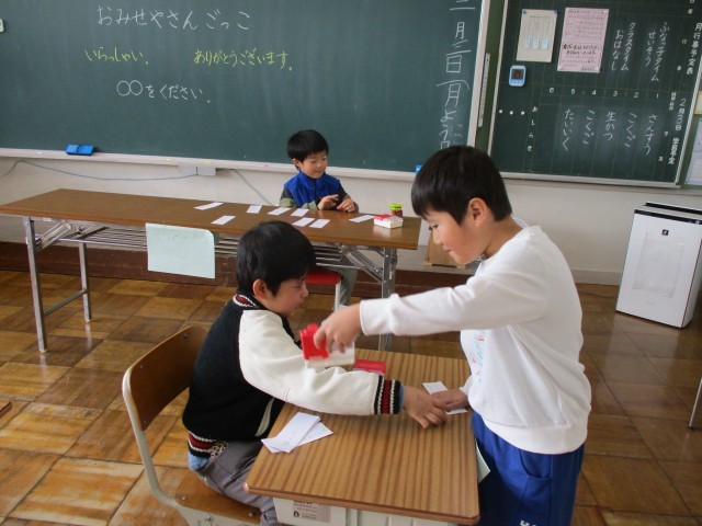 国語科の学習で、ものの名前を集めて、おみせやさんごっこをしました。