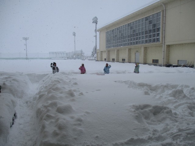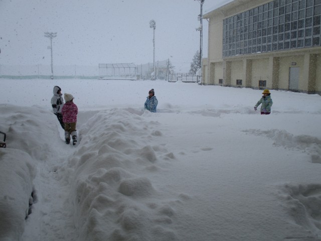 雪遊びの用意を持ってきていた子供たちが、元気に外で遊んでいました。