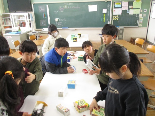 「面が全部正方形だと、さいころの形だね」「はこの形は、同じ面が2つずつあるね」