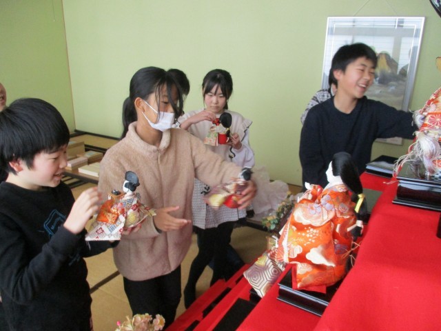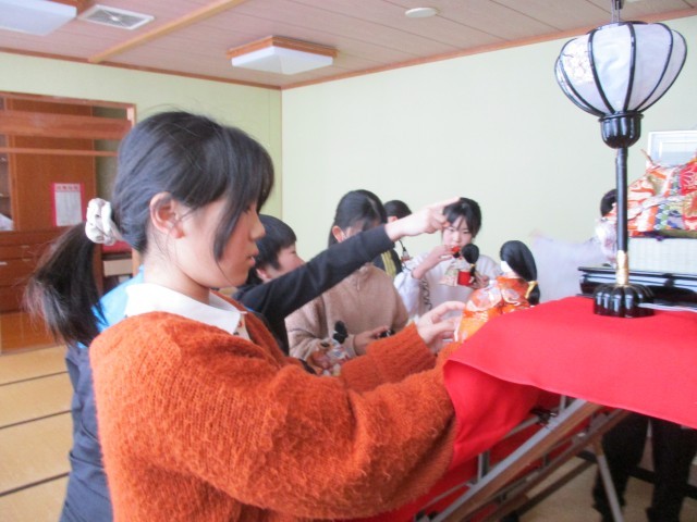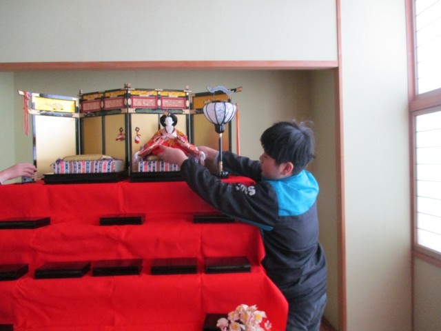 毎年飾られる大切なひな人形を、慎重に飾りました。