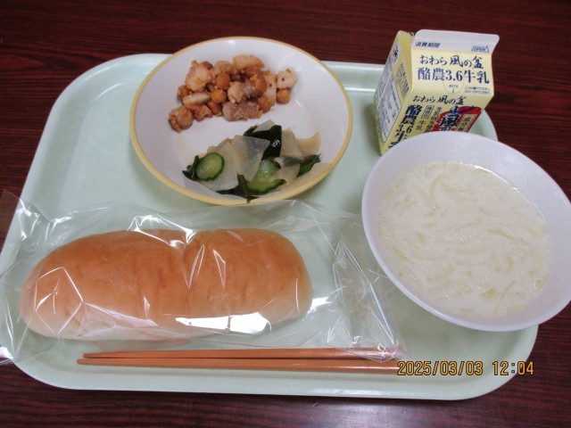 コッペパン 牛乳 鶏肉と豆のハニーマスタードからめ