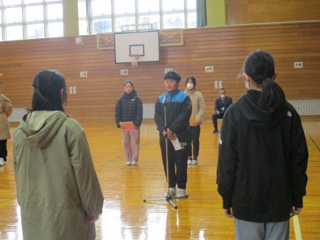 児童会引継式で6年生から5年生へ引き継ぎが行われました。