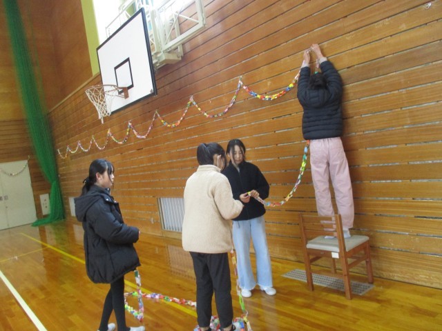 3・4・5年生で力を合わせて、卒業を祝う会に向けて準備しました。
