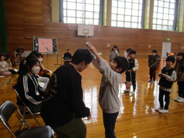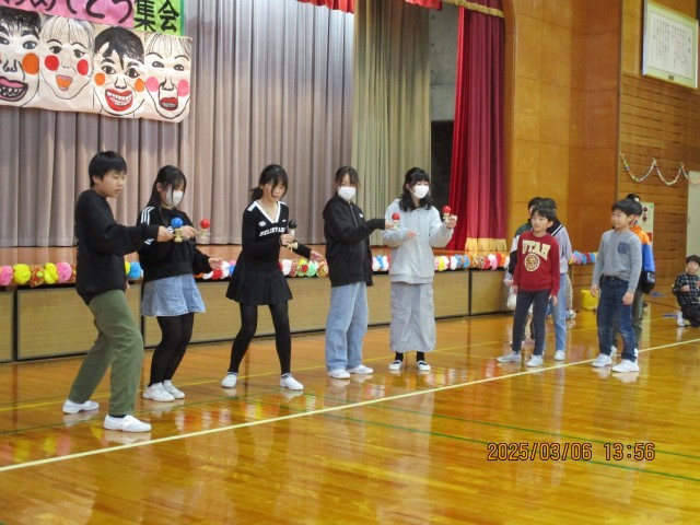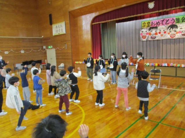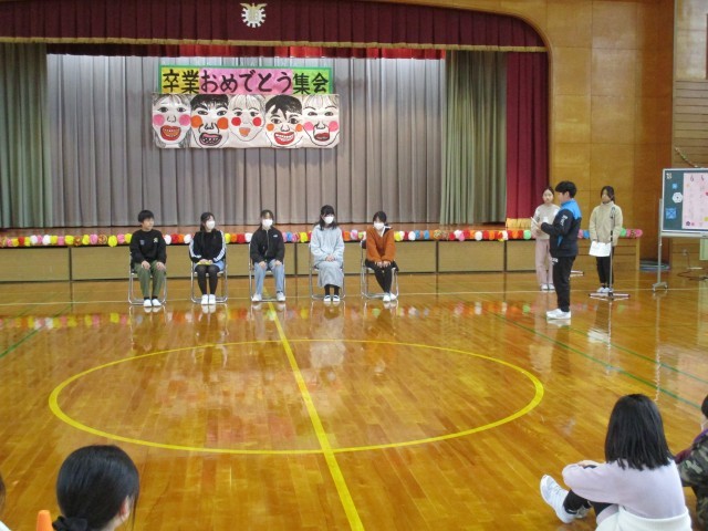 5年生が進行し、会を進めます。6年生に向けて、お祝いと感謝の気持ちを届けました。