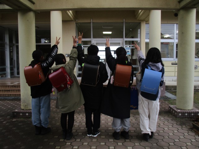 6年生は、給食の時間に、今までの感謝の気持ちや明日の卒業式への決意を話しました。そして、6年間一緒に過ごしたランドセルを背負って帰りました。