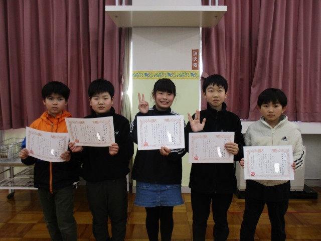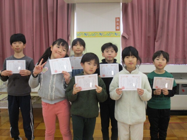 今日は、3月度の暗唱チャレンジと、暗唱や一輪車への取組を、年間でがんばった人への表彰がありました。