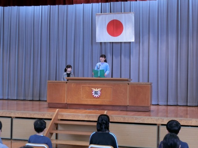 各学年の代表者が修了証をもらいました。その後、代表者のがんばり発表、校長先生の話と続きました。