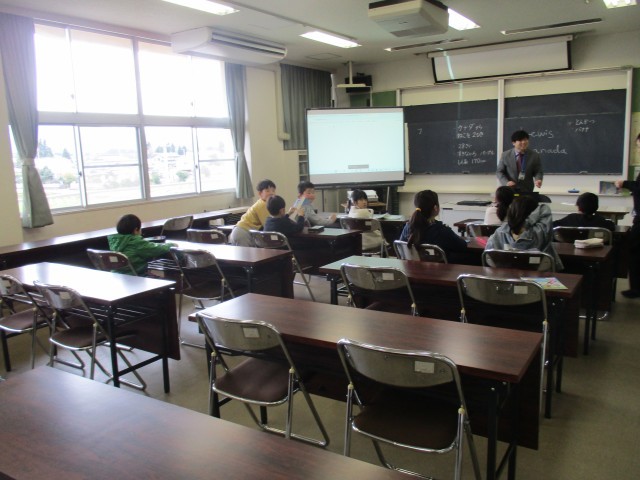 今年度から、新しいALTの先生が赴任されました。出身国のカナダのことを教えていただきました。
