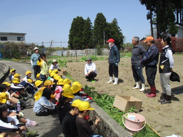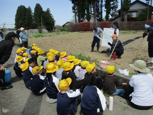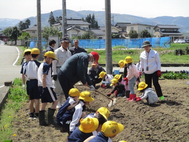 事前に地域の方々に畑を耕していただき、当日は種芋の植え方も教えていただきました。