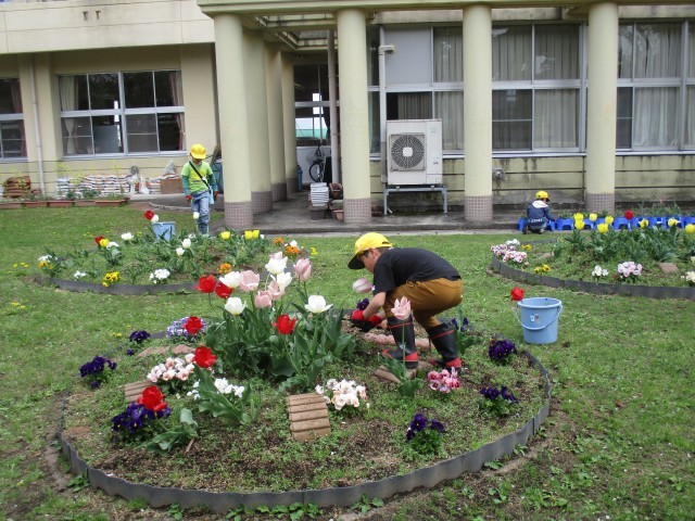 1・2年生は、生活科の学習で、花壇のお世話をしました。