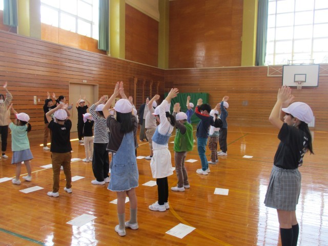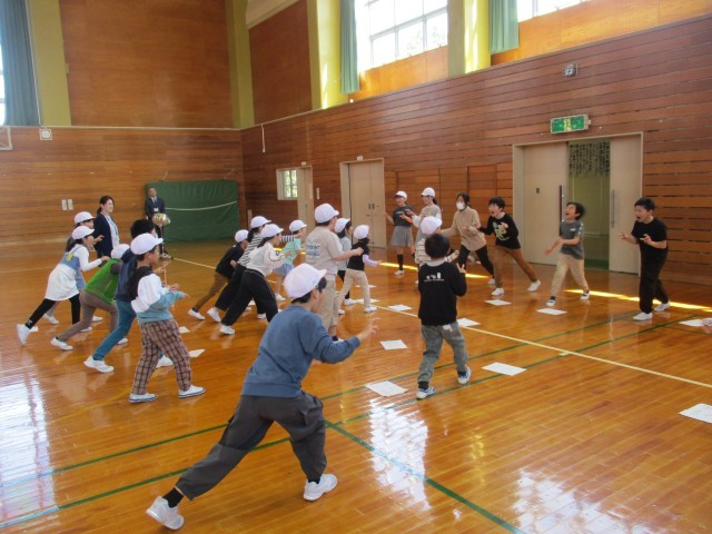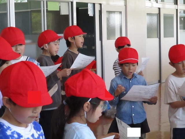 運動会に向けて赤団・白団に分かれ、応援合戦の練習をしています。どちらの団も、大きな声で頑張っています。