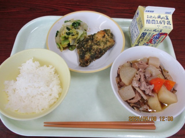 ごはん 牛乳 ホキの磯辺揚げ