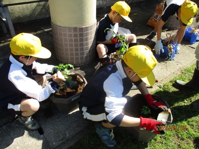 連休中に用意してきた野菜の苗を植えました。大切にお世話していきます。