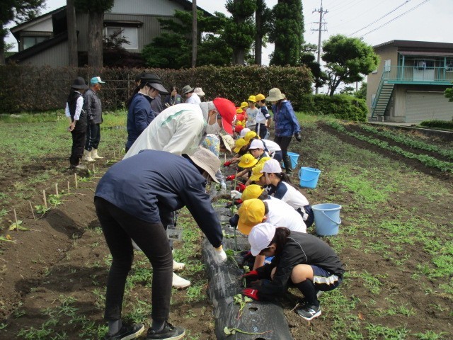 地域の方やJAの方と一緒にサツマイモの苗植えを行いました。